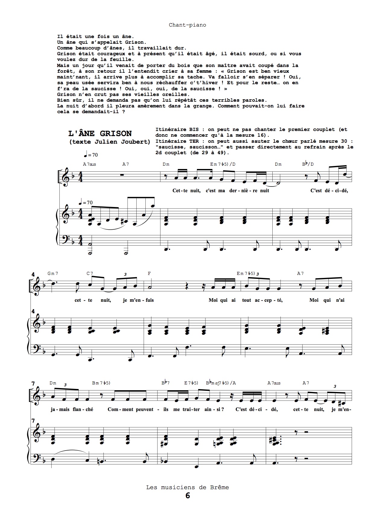 Télécharger ici la partition chœur seul offerte